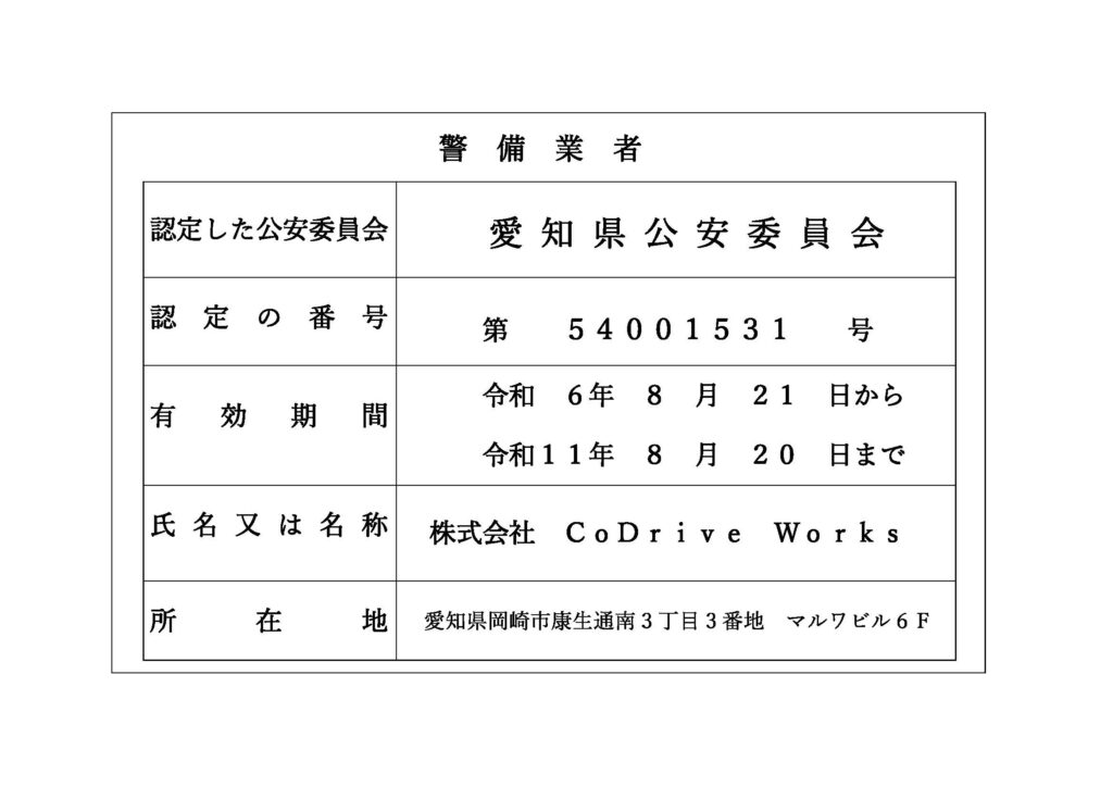 警備業の認定を取得しました。